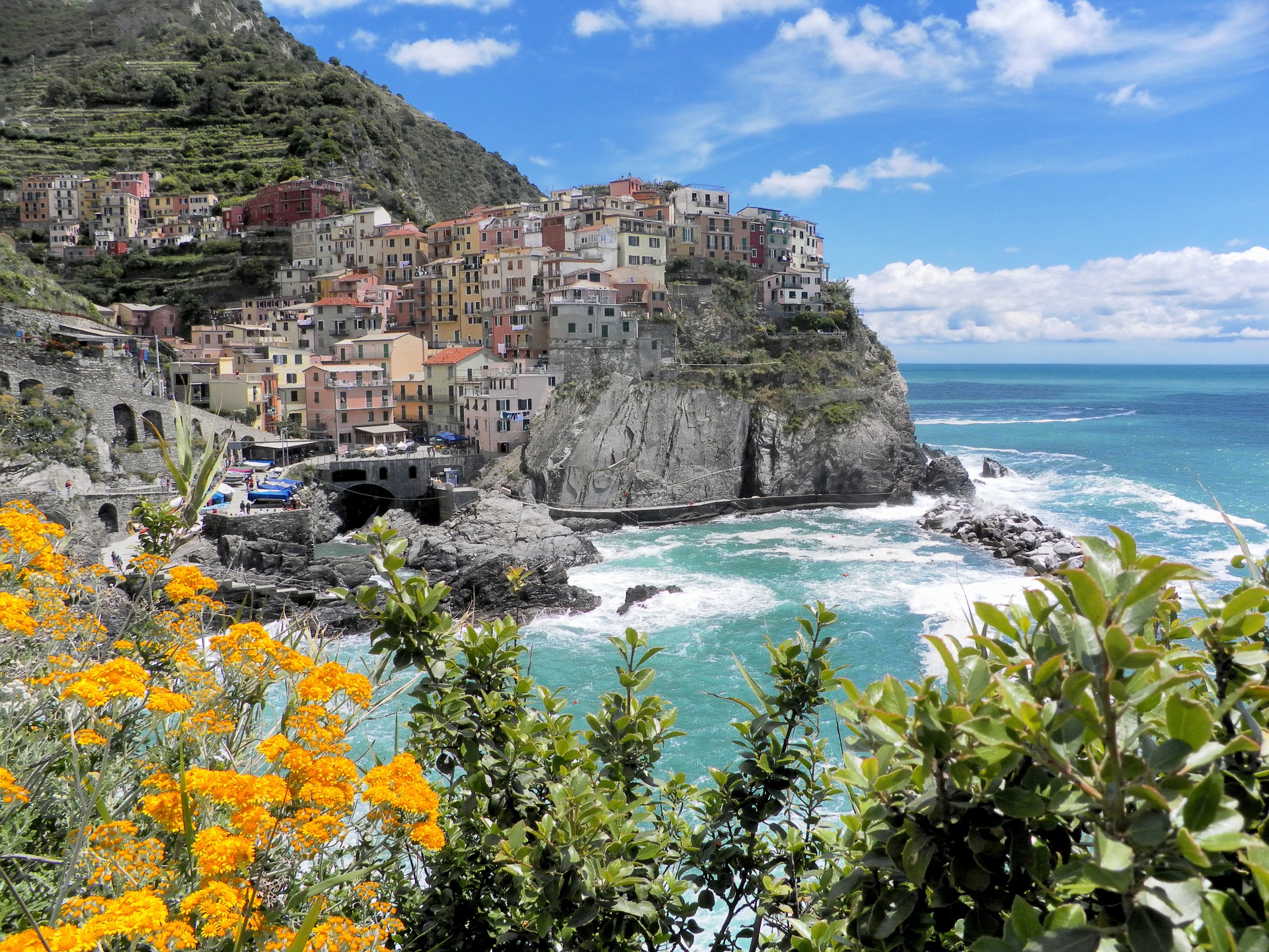 Monterosso este impartit in doua zone: Monterosso Vecchio (centrul istoric medieval) si cartierul rezidential modern, ce se intinde de-a lungul plajei Fegina. Satul are cea mai mare capacitate de acomodarea a turistilor din Cinque Terre, cele mai bune plaje si cele mai multe magazine de artizanat, vinarii si restaurante. Pe mine m-au fascinat in mod special detaliile interesante ale caselor vechi, cu ferestre si usi colorate, florile de la geamuri, forfota turistilor, mancarea si micile magazine mestesugaresti.Urmatorul satuc in care am poposit a fost Manarola, renumit pentru privelistea absolut incantatoare asupra Marii Ligurice. Se spune ca acesta a fost fondat de locuitorii din Volastra, un sat care exista inca de pe vremea romanilor, asezat chiar deasupra Manarolei, pe varful dealului. Pe vremuri, localnicii lucrau pamanturile de pe terasele din jur, plantau maslini, lamai si castani, precum si vita de vie. In secolul 12, o parte din locuitori s-au mutat in partea de jos a satului, pe malul marii si au fondat astfel actualul sat Manarola.