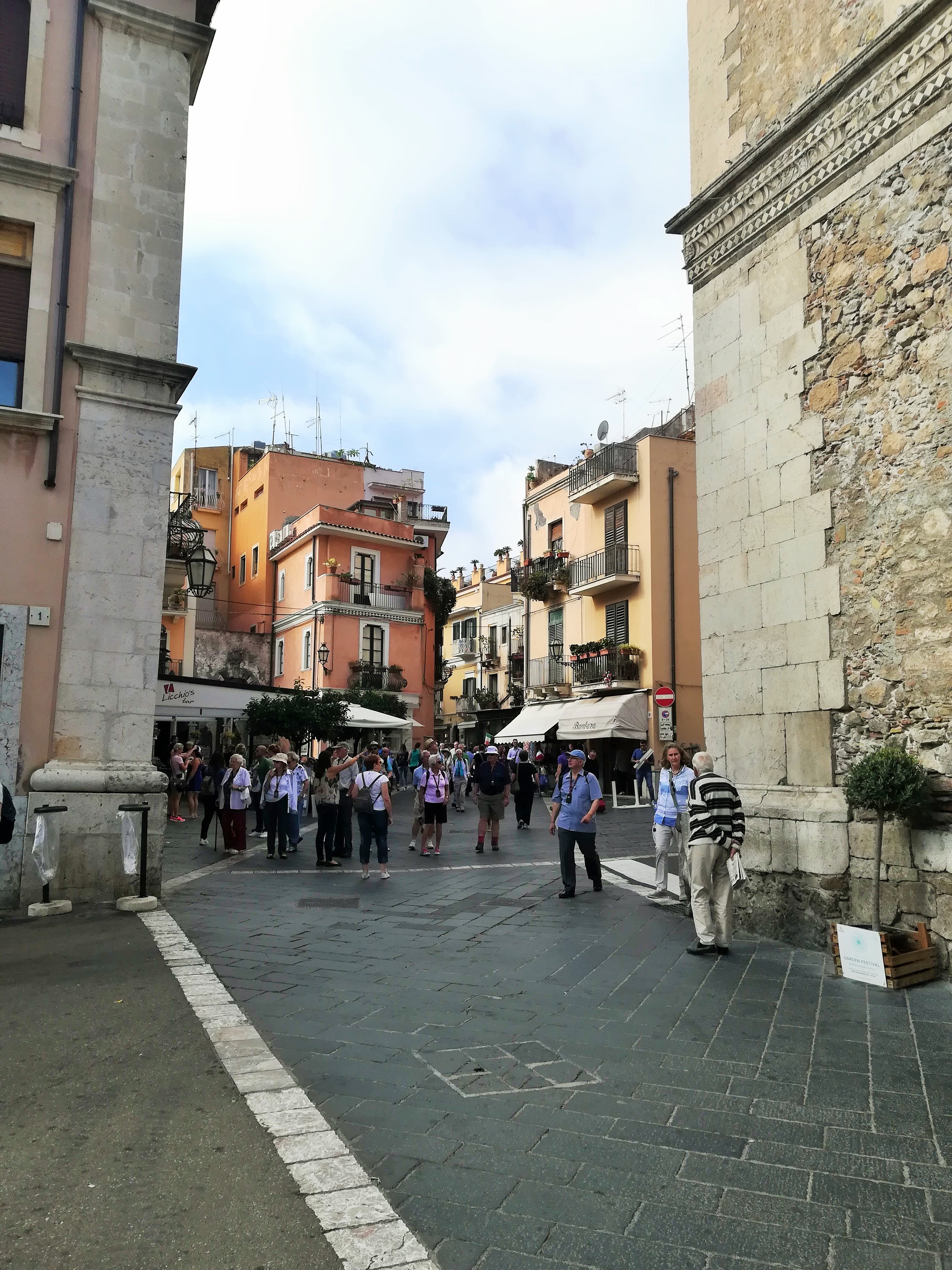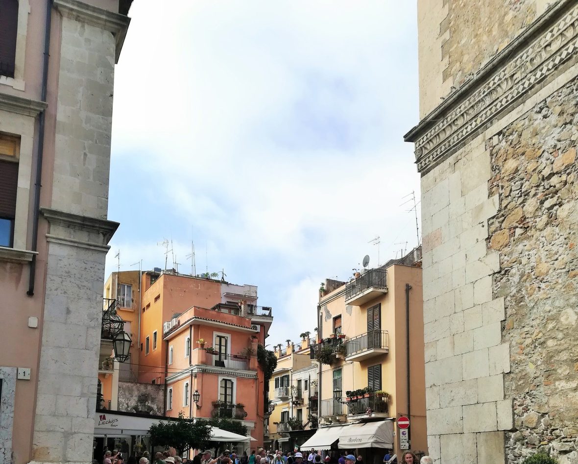 Iata-ne asadar ajunsi in frumoasa Taormina. De la statia de autobuz am mers circa 500 de metri si am ajuns in centrul istoric. Am patruns aici prin Porta Messina ce ne-a condus in prima piateta, Piazza Vittorio Emanuele, unde se afla si Palatul Corvaja.