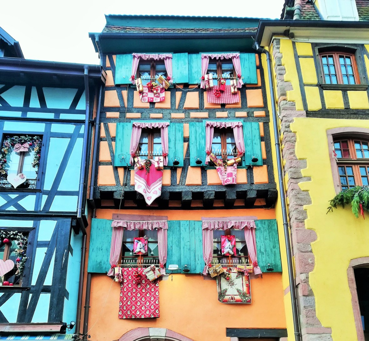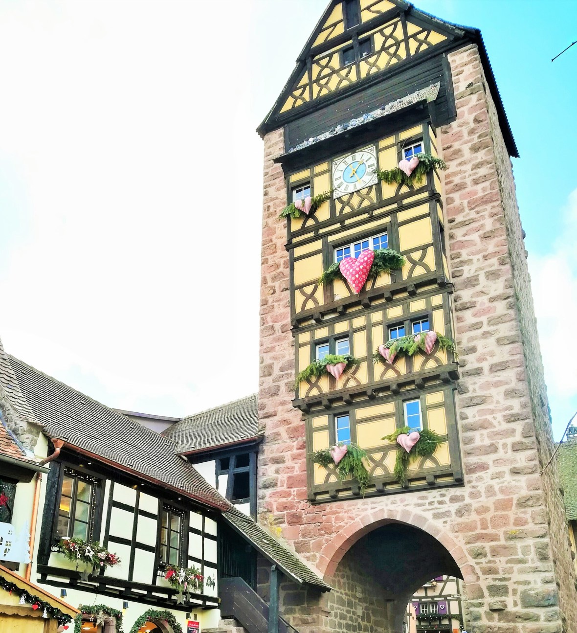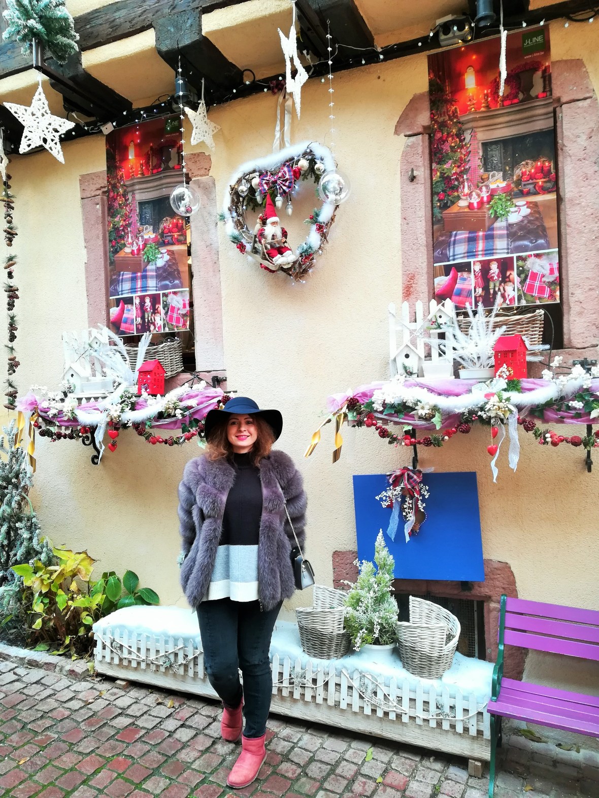 Dintre toate locurile vizitate in Alsacia, Riquewihr a fost fara indoiala preferatul meu. Nu stiu exact care sunt motivele, dar pur si simplu mi-a transmis o stare incredibila. A fost ca si cand pret de cateva ore am pasit intr-o lume magica a povestilor, o lume cu casute din turta dulce, toate decorate in spiritul sarbatorilor de iarna, o lume fericita in care nu exista griji sau probleme. Fata mea cred ca spune tot :).