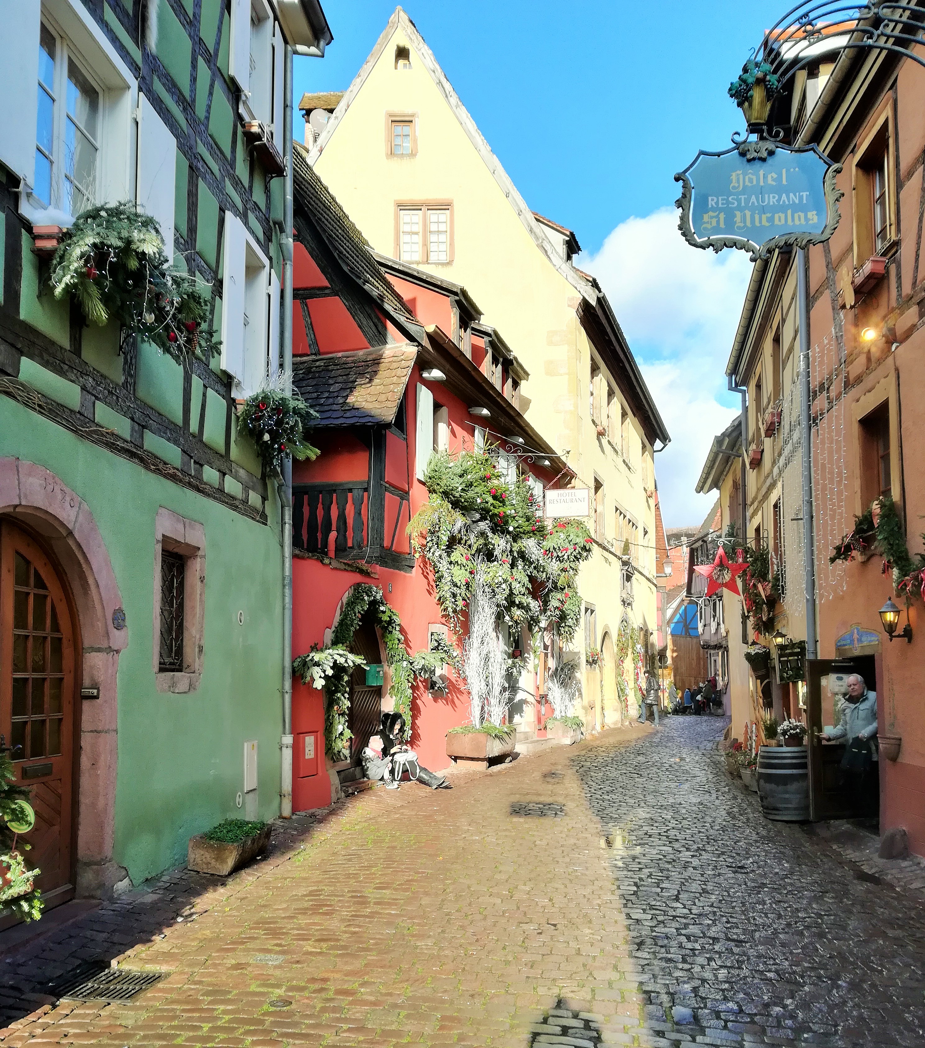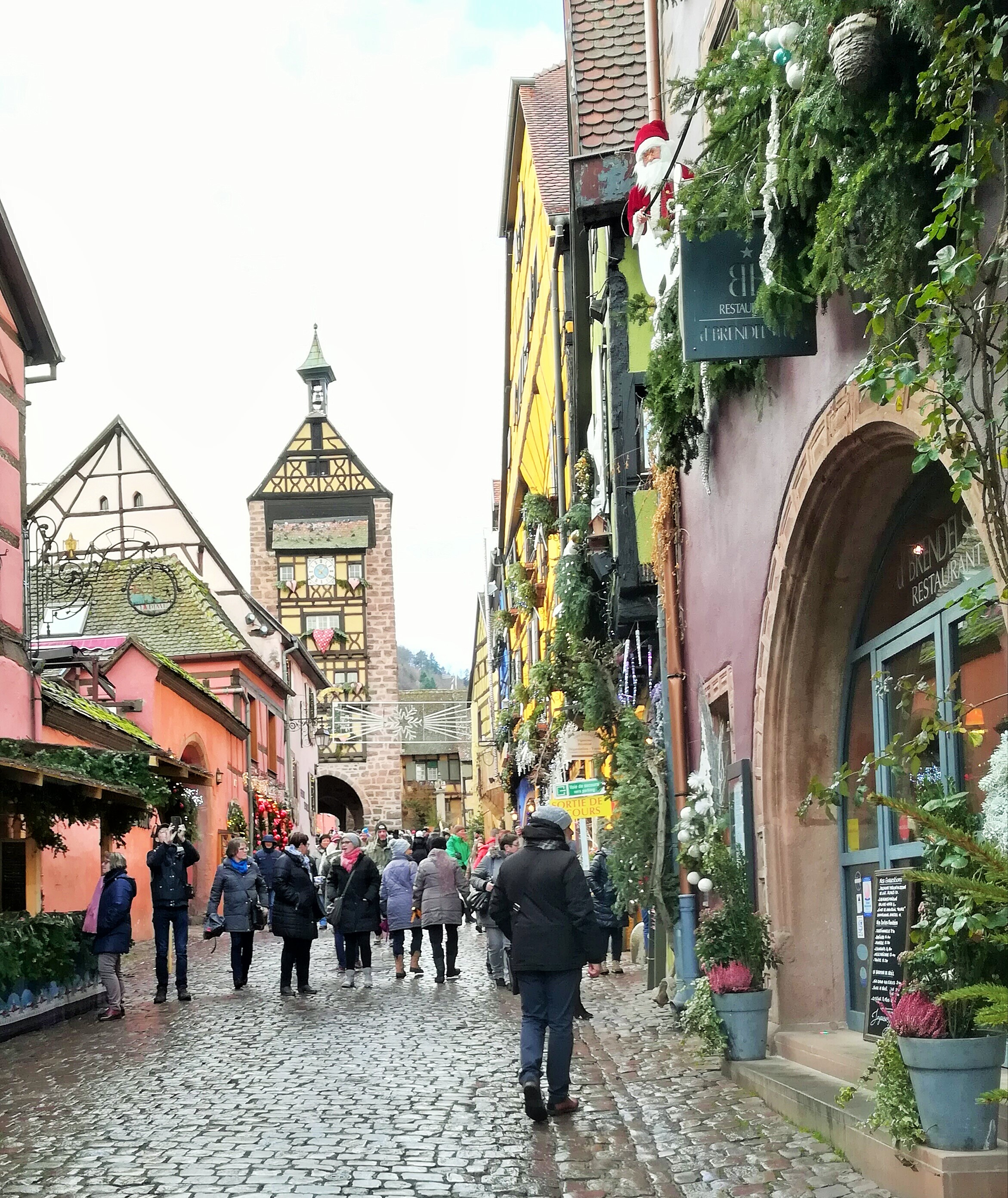 Am mers pe strada principala a satului (Rue du Général-de-Gaulle) strajuita de case viu colorate, toate decorate cu elemente de Craciun, hoteluri, restaurante si magazine de suveniuri. Un adevarat spectacol daca luam in calcul si turistii zgomotosi care nu stiau ce sa fotografieze mai intai.