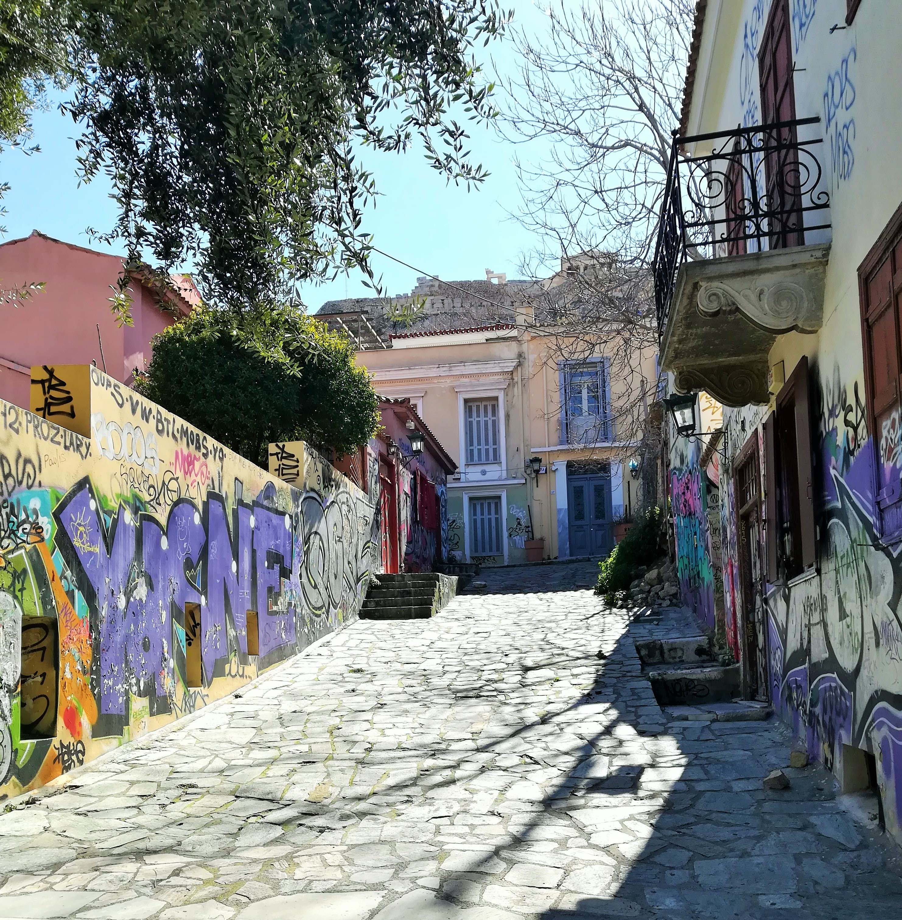 Drumul spre Monastiraki te poarta pe strazi vechi, fermecatoare, printr-un cartier micut cu case acoperite de graffiti, pana ce ajungi la „Agora Antica”, centrul politic, comercial si religios al Atenei antice. Agora inseamna in limba greaca “adunare si prelegere”, indicand ca in acest sit aveau loc tot felul de cuvantari si prelegeri.
