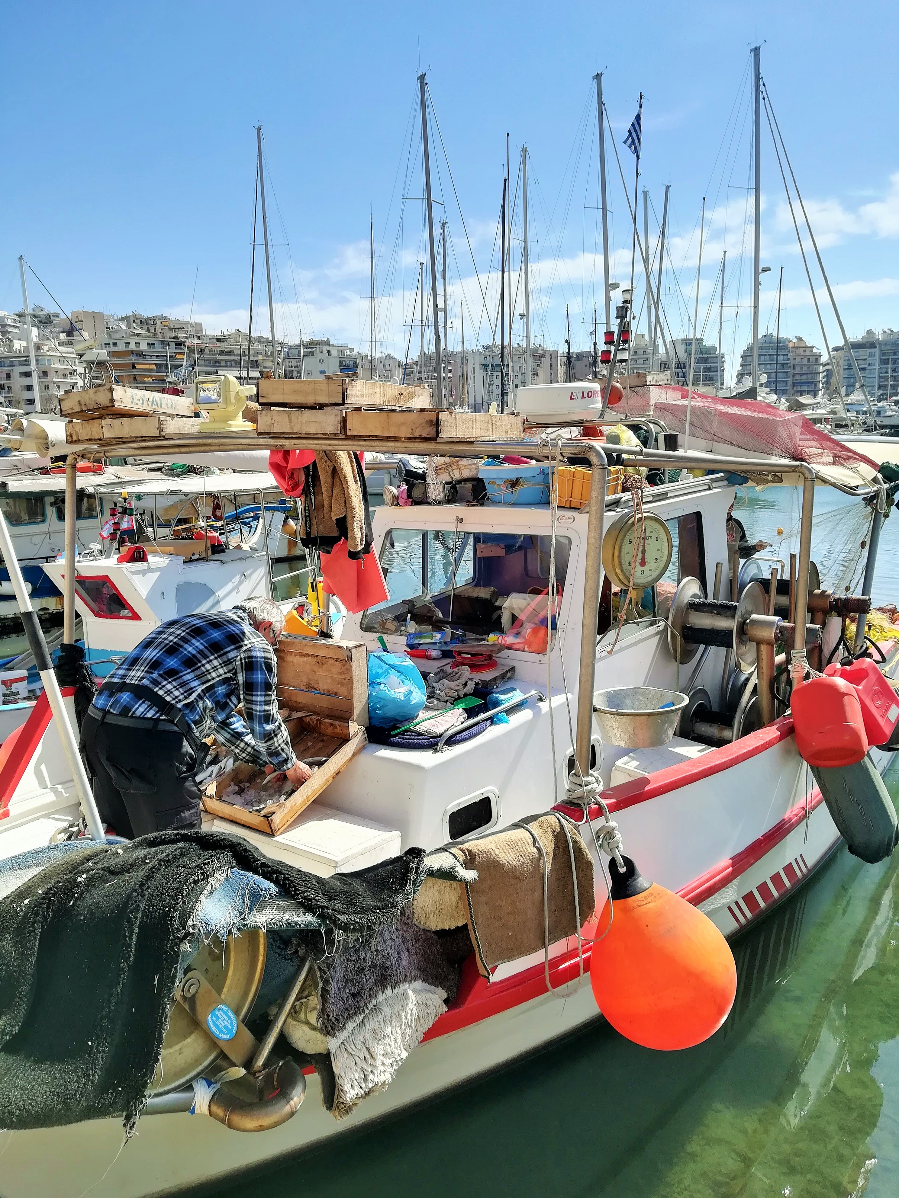 Sambata dimineata am pornit catre portul turistic Marina Zeas (o calatorie pana aici cu taxiul este 10 euro), o extensie a celebrului port Piraeus, un loc impresionant atat prin dimensiuni, cat si prin multitudinea de iahturi, barci si barcute de pescuit.