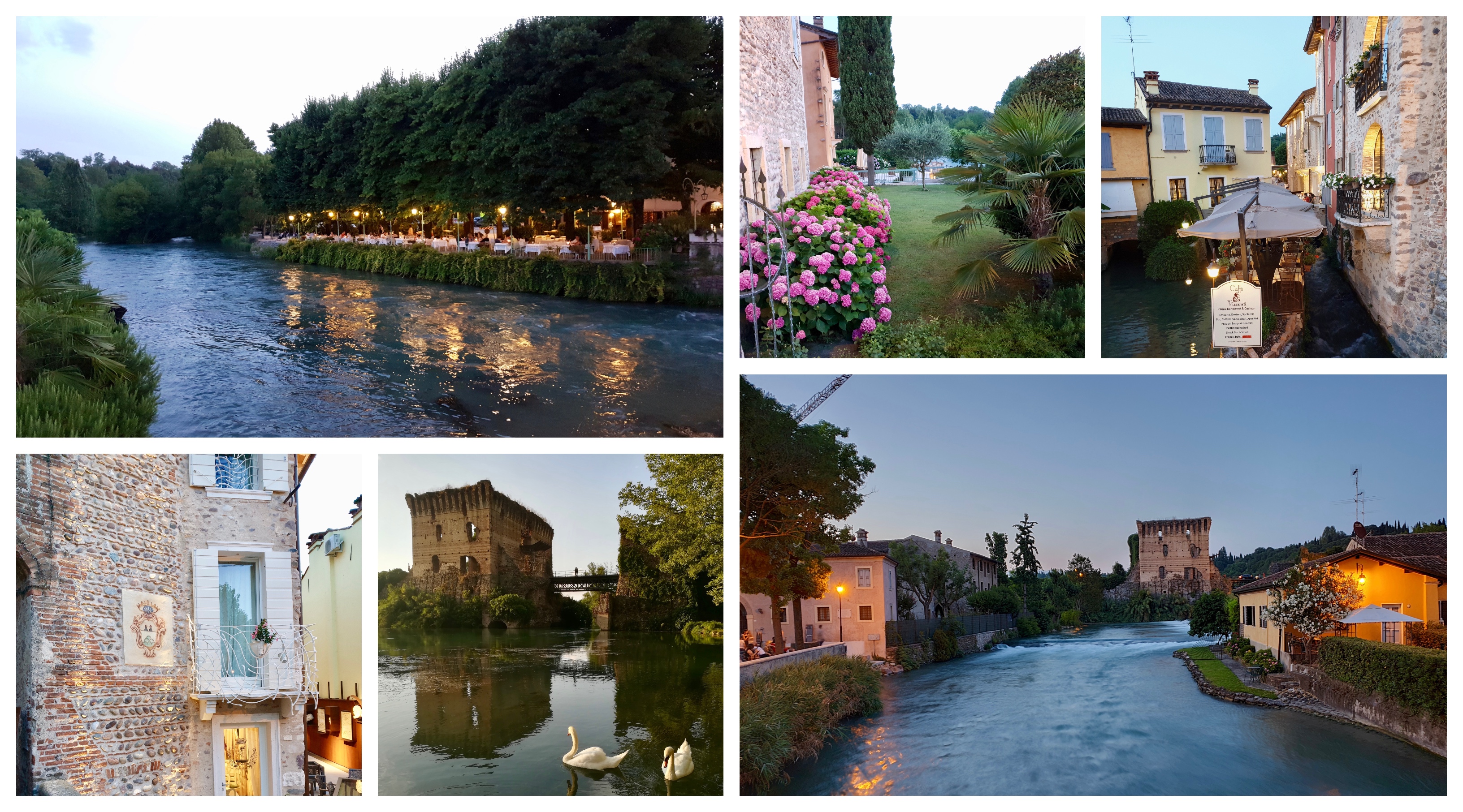 Valeggio sul Mincio este cel mai romantic orasel in care am stat pana acum, in special dupa apusul soarelui. Centrul vechi micut (care apropo se afla la 2 minute de apartamentul in care am stat), cu un rau ce serpuieste prin mijloc, case vechi de piatra decorate cu hortensii multicolore si multa verdeata, terase elegante pe malul raului ce te introduc intr-o atmosfera idilica, lebedele nestingherite ce se plimba pe apele turcoaz, castelul de pe culmea dealului ce poate fi vazut din orice parte a orasului… cam asa arata universul incantator numit Valeggio sul Mincio. Nici ca puteam face o alegerea mai buna in privinta cazarii.