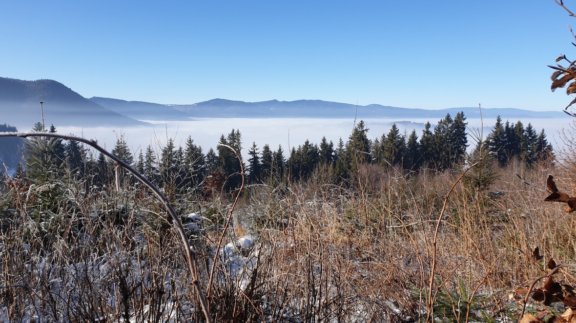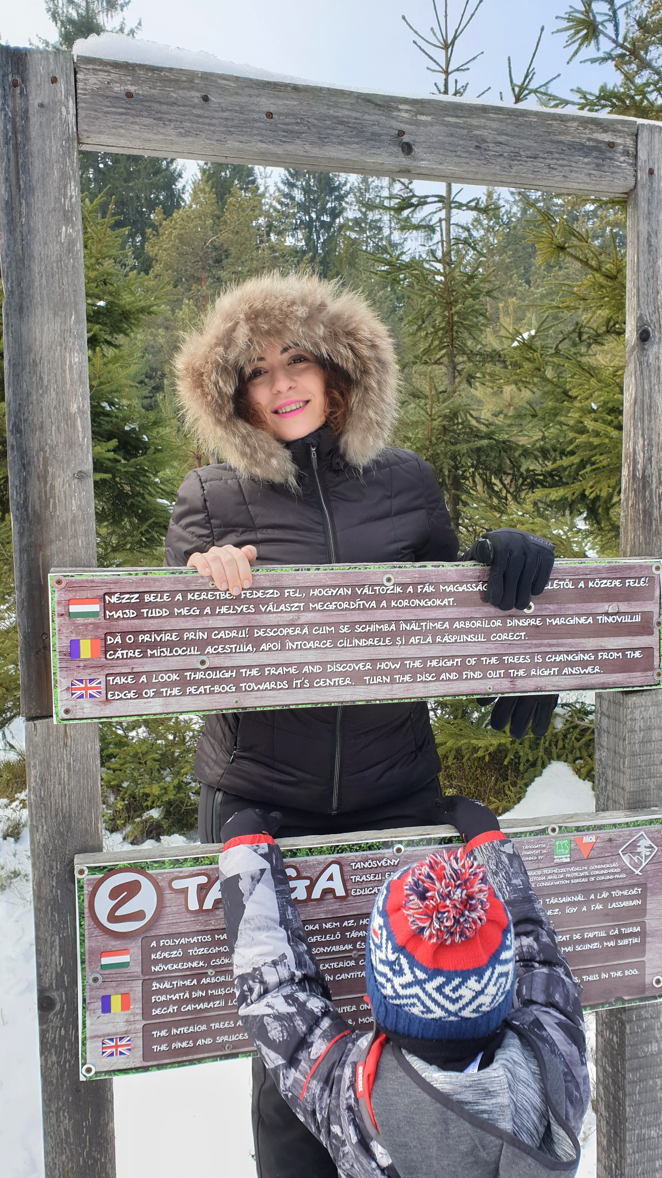 Am pornit apoi intr-o noua calatorie cu caruta, de aceasta data pe platoul vulcanic de deasupra Corundului, unde ne-am bucurat de peisaje incredibile, sate izolate, zapada si am patruns in universul siberian, mai exact in ireala taiga romaneasca „Tinovul de la Fantana Brazilor”. Tinovul este un refugiu glaciar ce ofera adapost numeroaselor specii de plante si animale care au rezistat schimbarilor climatice post glaciare, tocmai datorita micro-climatului racoros si umbros.