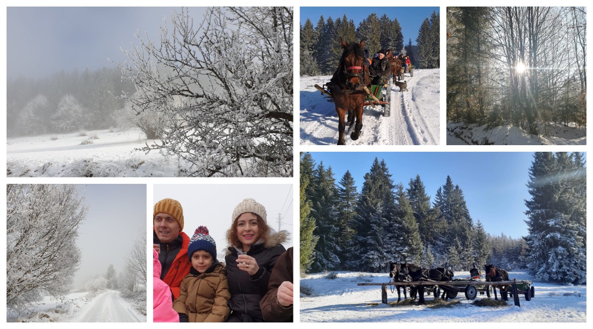 Aventura noastra a inceput sambata dimineata, in comuna Lazaresti, de unde am pornit intr-o calatorie incredibila cu caruta, pe un traseu de aproximativ 24 km (dus – intors) prin padurile inzapezite de pe muntele Hagyesteto.