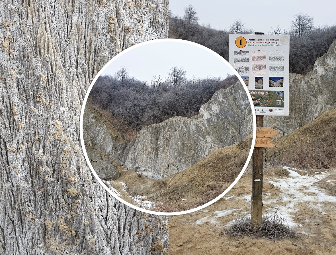 In cadrul unui traseu de aproximativ 90 de minute am descoperit un canion absolut fermecator, cu stanci si creste de sare sclipitoare, lapiezuri, mici pesteri, turnulete, izvoare cu apa sarata; toate situate intr-o zona naturala cu vegetatie bogata. Din canion o poti lua pe potecile laterale pentru a vizita cateva doline mai mari, strajuite de stanci si pereti de sare, ce contureaza un peisaj unic. Tot aici poti testa si efectele terapeutice ale namolului sarat de origine minerala, fenomenul fiind asemanator cu cel de la Marea Moarta.