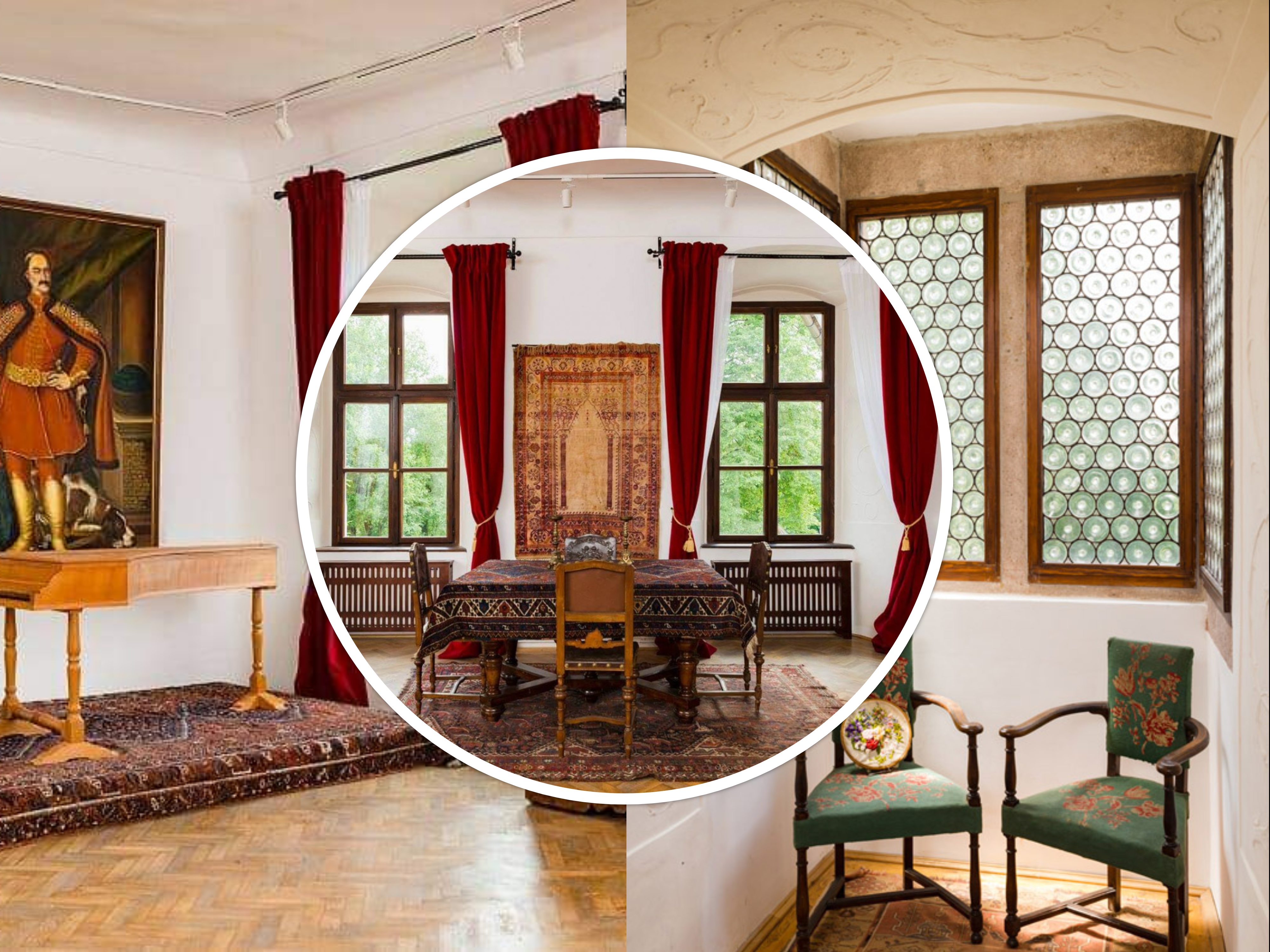 Urmeaza Camera Domnului, un loc ce denota masculinitate prin elementele expuse aici, printre care mentionez trofeele de vanatoare, portretele inaintasilor, armele, scrinul cu instrumentele de scris si covoarele turcesti.