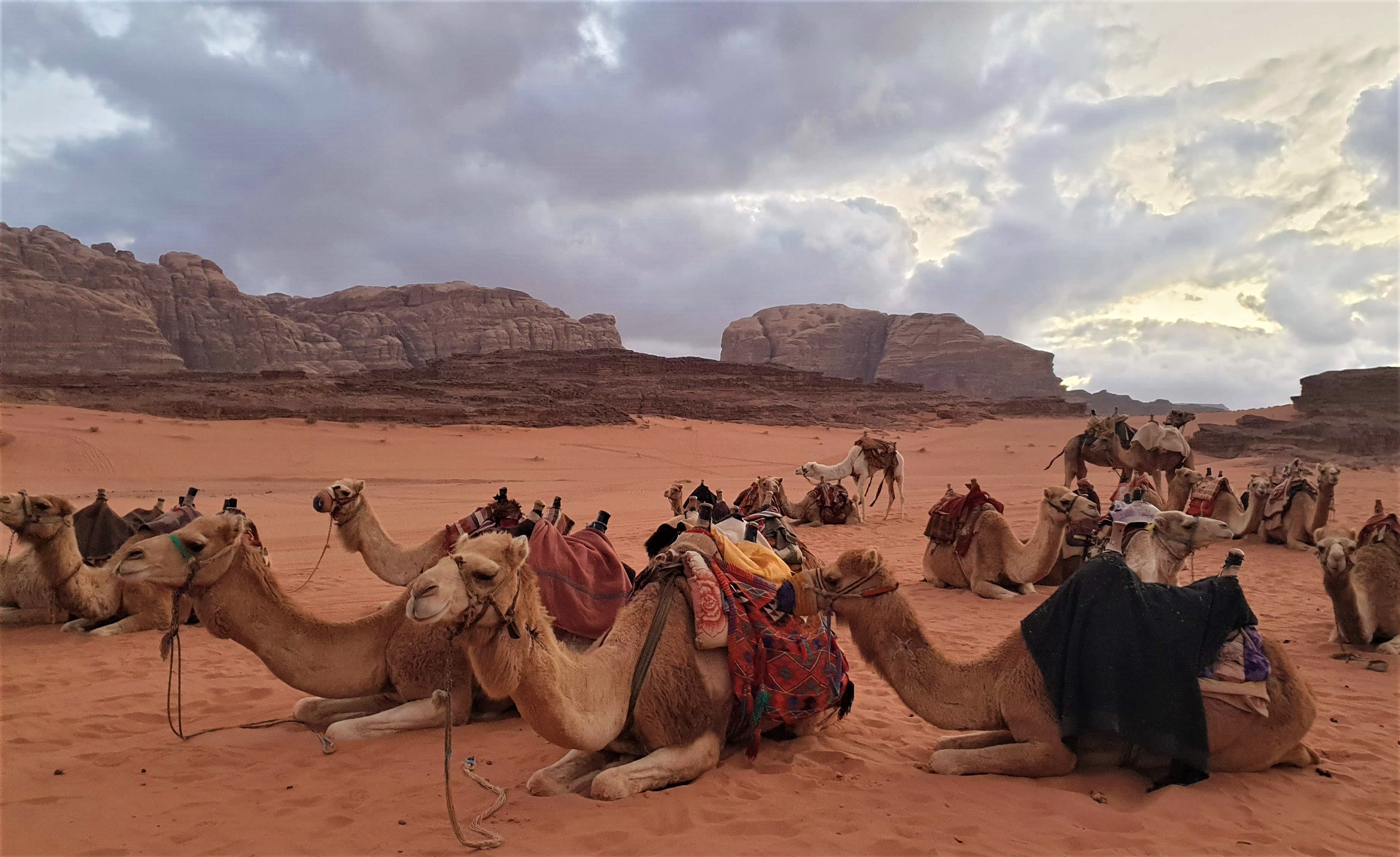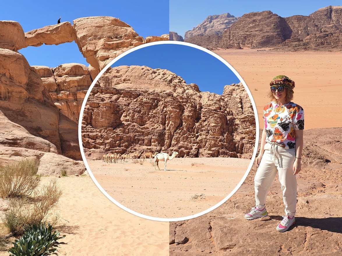 Din Madaba am plecat cu mult entuziasm catre una dintre cele mai frumoase zone de desert din lume, Wadi Rum, unde ne-am cazat la Al Sultana Luxury Camp. Am ajuns cu putin timp inainte de apus asa ca ne-am bucurat de o scurta plimbare cu camilele, dupa care am petrecut o seara de neuitat cu preparate delicioase, muzica si dansuri locale, costume traditionale si multa voie buna. Recunosc ca mielul gatit la nisip dupa reteta traditionala a fost divin 😊!