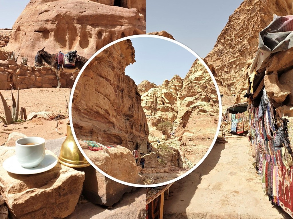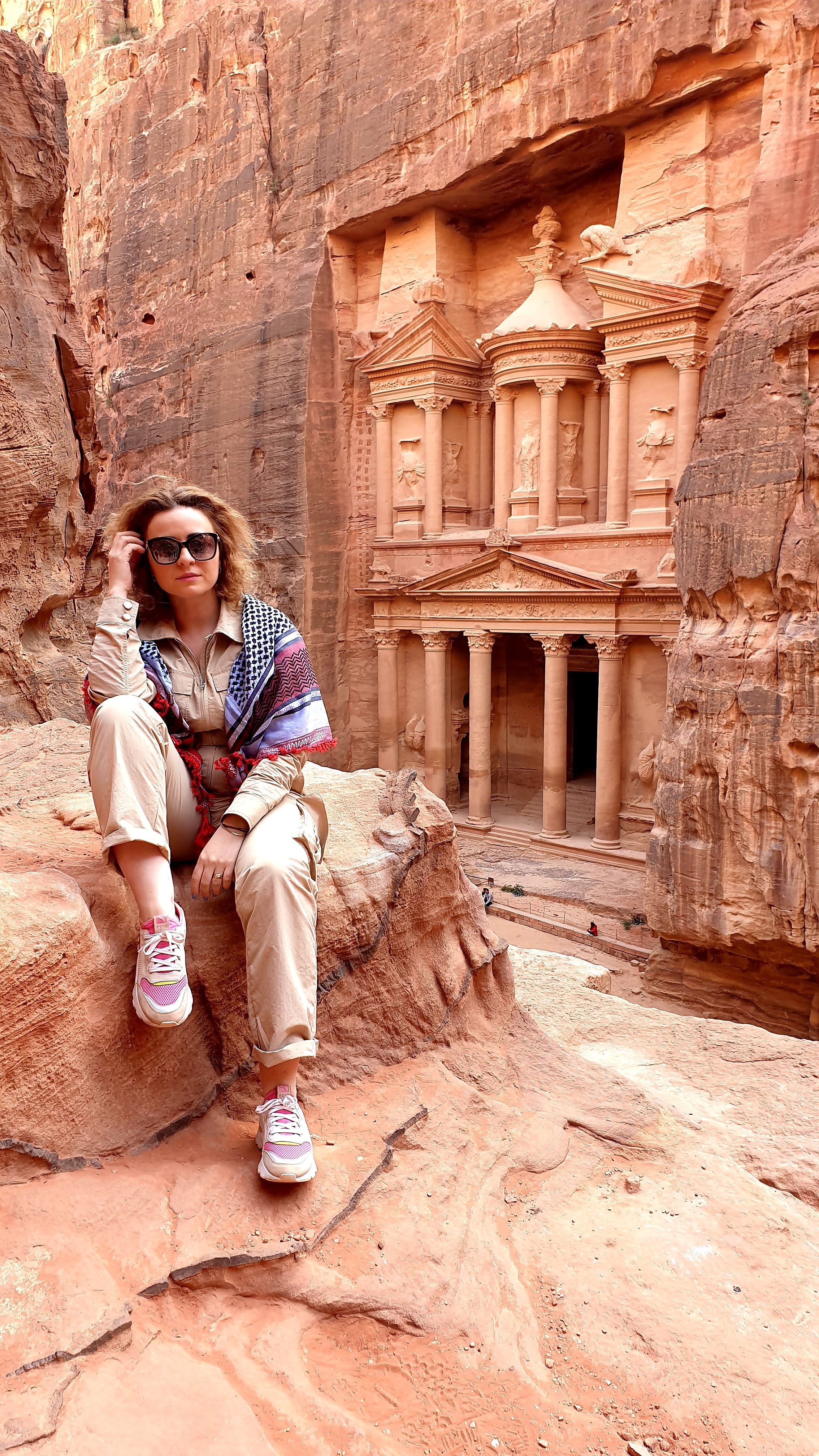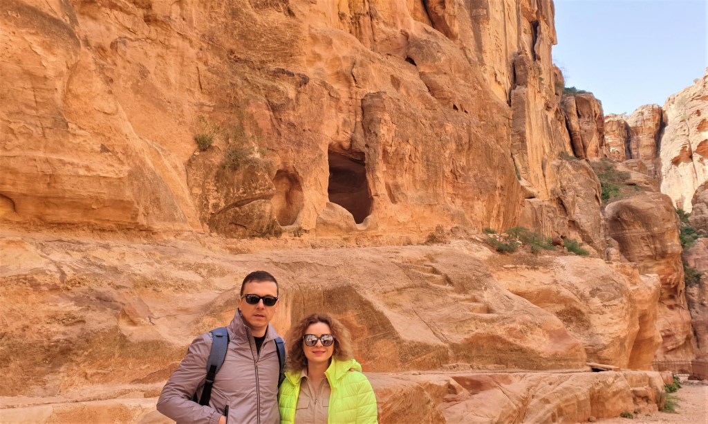Am coborat destul de repede de la Manastire pentru ca nu puteam rata ocazia de a-mi face cele mai spectaculoase fotografii in celebrele puncte de belvedere pe care le vezi pe retelele de socializare. Acestea se afla cumva in lateralele Trezoreriei, insa trebuie sa te cateri pe niste stanci abrupte, obligatoriu insotiti de un beduin (singur nu ai voie). Astfel, am avut parte de cea mai tare sedinta foto, realizata tot de beduinul ce ne-a fost ghid 😊. Trebuie sa recunosc ca beduinii sunt super priceputi in arta fotografica 😊.