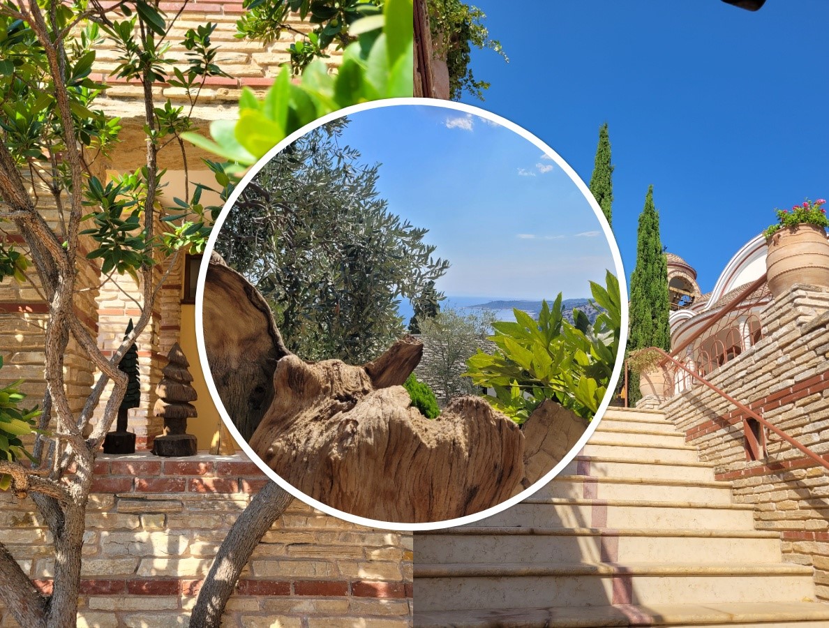 Cea mai mare manastire din Thassos sta cocotata pe o stanca impozanta, pe coasta de sud-est a insulei, iar la poalele sale se afla o pestera, de unde izvoraste in permanenta agheasma. Este fara indoiala unul dintre cele mai frumoase locuri de pe insula, ce se poate mandri cu o priveliste de neegalat asupra Marii Egee, inclusiv catre Sfantul Munte Athos in zilele senine.